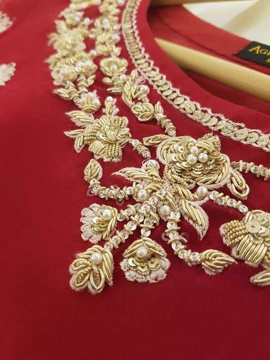 Agha Noor Heavy Embroidered with Hand Work organza dupatta-GA10193