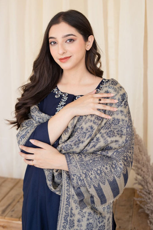 Jazmin 3PC Embroidered Karandi Suit with Printed whool shawal-DC2106